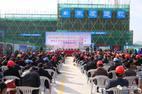 11月24日上午,由紹興市住建局主辦,柯橋區(qū)建管局、鑒湖-柯巖管委會(huì)、浙江東廈建設(shè)工程有限公司承辦的紹興市建筑工程質(zhì)量安全生產(chǎn)文明施工暨民工實(shí)名制信息管理現(xiàn)場(chǎng)觀摩會(huì)在我司鳳凰創(chuàng)新園項(xiàng)目部順利召開(kāi)。參加會(huì)議的有紹興市住建局領(lǐng)導(dǎo)、柯橋區(qū)政府領(lǐng)導(dǎo)、柯橋區(qū)建管局領(lǐng)導(dǎo)、柯橋鑒湖柯巖管委會(huì)領(lǐng)導(dǎo)、各區(qū)、縣(市)建設(shè)(建管)局分管質(zhì)量安全副局長(zhǎng)、質(zhì)監(jiān)安監(jiān)站的負(fù)責(zé)人、建設(shè)單位領(lǐng)導(dǎo);各區(qū)、縣(市)特、一級(jí)資質(zhì)以上施工企業(yè)、甲級(jí)監(jiān)理企業(yè)負(fù)責(zé)人代表、市區(qū)所有在建工程項(xiàng)目經(jīng)理;2017年度發(fā)生過(guò)安全生產(chǎn)事故的企業(yè)負(fù)責(zé)人、項(xiàng)目經(jīng)理,共500余人參加了此次會(huì)議。