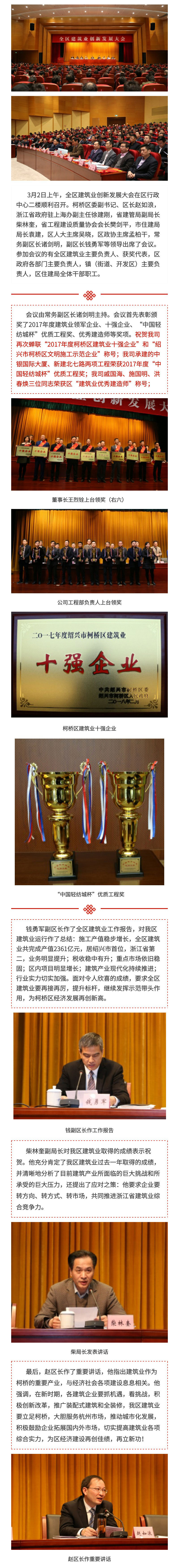 祝賀區(qū)建筑業(yè)創(chuàng)新發(fā)展大會順利召開,我司蟬聯(lián)“2017年度柯橋區(qū)建筑業(yè)十強企業(yè)”