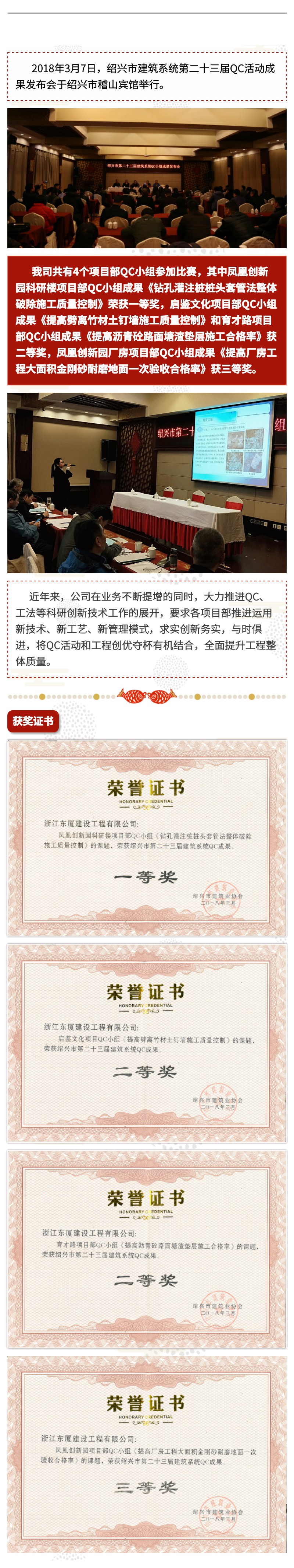 浙江東廈多項(xiàng)QC小組成果獲獎