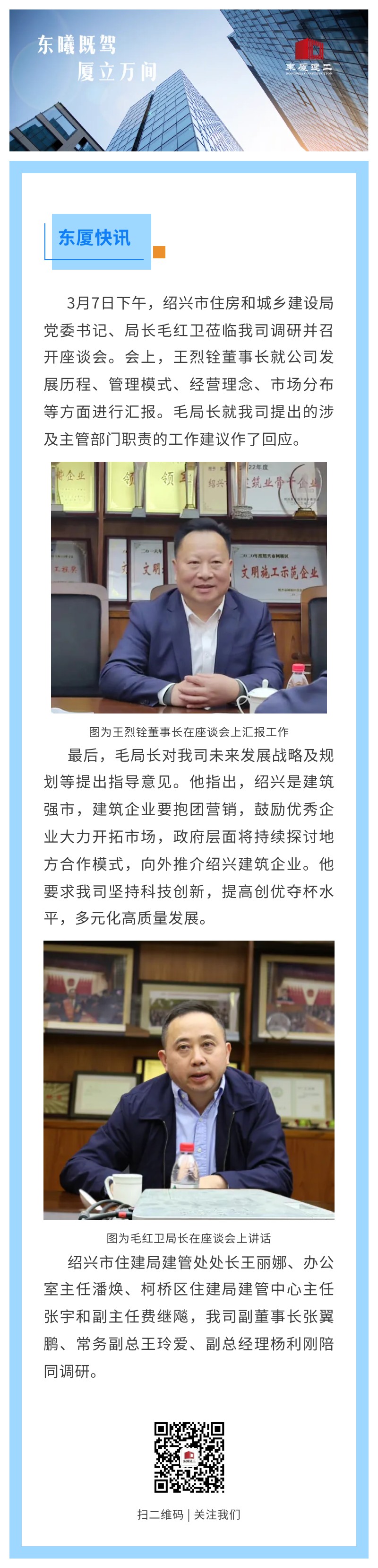 【東廈快訊】紹興市住建局毛紅衛(wèi)局長蒞臨我司調(diào)研指導(dǎo)