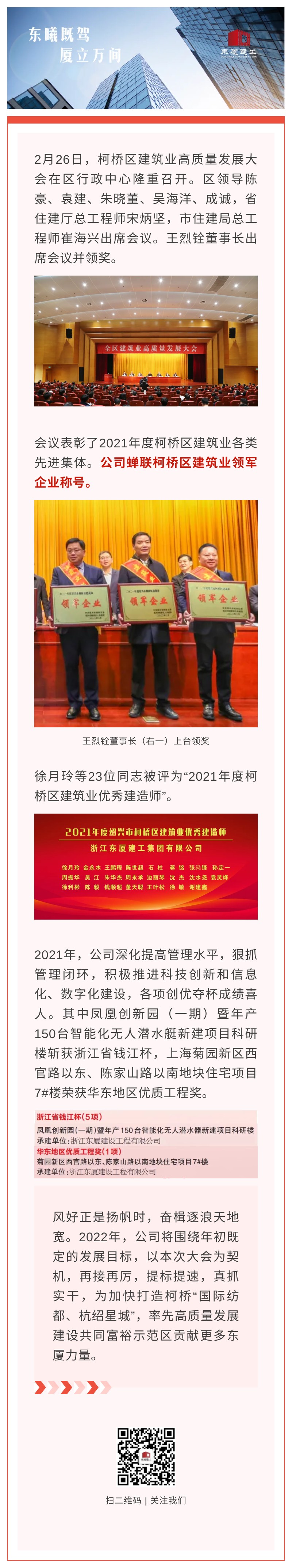 提標(biāo)提速 實干實績 | 公司蟬聯(lián)柯橋區(qū)建筑業(yè)領(lǐng)軍企業(yè)稱號