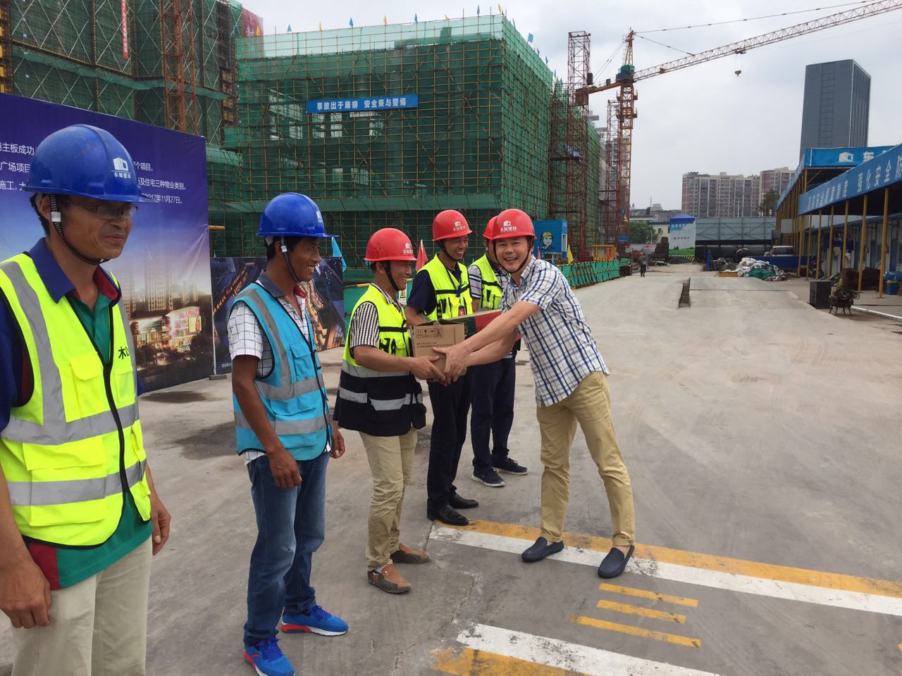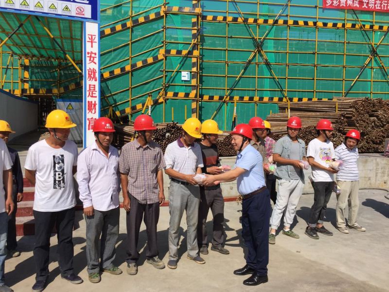 | 進(jìn)入盛夏以來(lái),熾日炎炎,熱浪滾滾。我公司一線員工仍堅(jiān)守工作崗位,奔波于施工現(xiàn)場(chǎng),戰(zhàn)高溫、斗酷暑,用辛勤的汗水給東廈添磚加瓦、創(chuàng)造業(yè)績(jī)。他們的生產(chǎn)、生活狀況時(shí)刻牽動(dòng)著公司領(lǐng)導(dǎo)的心。7月13至16日,公司董事長(zhǎng)、總經(jīng)理領(lǐng)導(dǎo)帶隊(duì)對(duì)奮戰(zhàn)一線的項(xiàng)目部進(jìn)行慰問(wèn),慰問(wèn)組成員冒著高溫酷暑深入基線一層來(lái)到貴州、義烏、鄭州等項(xiàng)目部現(xiàn)場(chǎng),將防暑降溫問(wèn)品一一送到一線職工的手中,感謝他們?yōu)楣窘ㄔO(shè)作出的貢獻(xiàn)。 同時(shí)一再叮囑大家做好高溫防護(hù)工作,要求各項(xiàng)目負(fù)責(zé)人要高度關(guān)注關(guān)心一線職工的身心健康,合理安排室外工作的作息時(shí)間,充分做好后勤保障工作。越是在高溫情況下,越要高度重視安全生產(chǎn)工作,認(rèn)真制定防暑措施,讓廣大職工度過(guò)一個(gè)安全、健康的夏季。領(lǐng)導(dǎo)慰問(wèn)給戰(zhàn)斗在酷暑中的一線員工帶來(lái)了絲絲涼意,不僅鼓舞了一線員工的士氣,更激發(fā)了大家的工作熱情。大家表示要繼續(xù)發(fā)揚(yáng)戰(zhàn)高溫、抗酷暑的奮斗精神,立足崗位,圓滿完成東廈度夏各項(xiàng)工作任務(wù)。