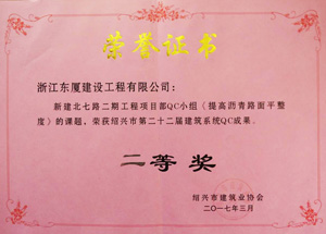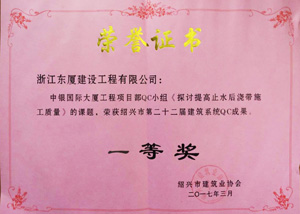 | 2017年3月1日,紹興市建筑系統(tǒng)第二十二屆QC活動成果發(fā)布會于紹興市稽山賓館舉行。在眾多發(fā)布的QC小組成果中,我司中銀國際大廈項目部QC小組成果《探討提高止水后澆帶施工質(zhì)量》榮獲紹興市建筑系統(tǒng)QC成果一等獎,新建北七路二期工程項目部QC小組成果《提高瀝青路面平整度》獲得二等獎。 近年來,我司積極鼓勵項目部針對工程施工過程中的難點、重點及存在的問題進行研究、探討,發(fā)揚創(chuàng)新精神,大力開展QC小組活動。本次QC小組成果取得的成績也正是給予所有的項目部開展QC小組活動一個好的例子、榜樣。 百尺竿頭,更進一步,借此次QC成果取得優(yōu)異成績的契機,我司將創(chuàng)造更為濃厚的科技創(chuàng)新氛圍,積極開展科技創(chuàng)新活動,力爭取得更多、更好、更全面的科技成果!