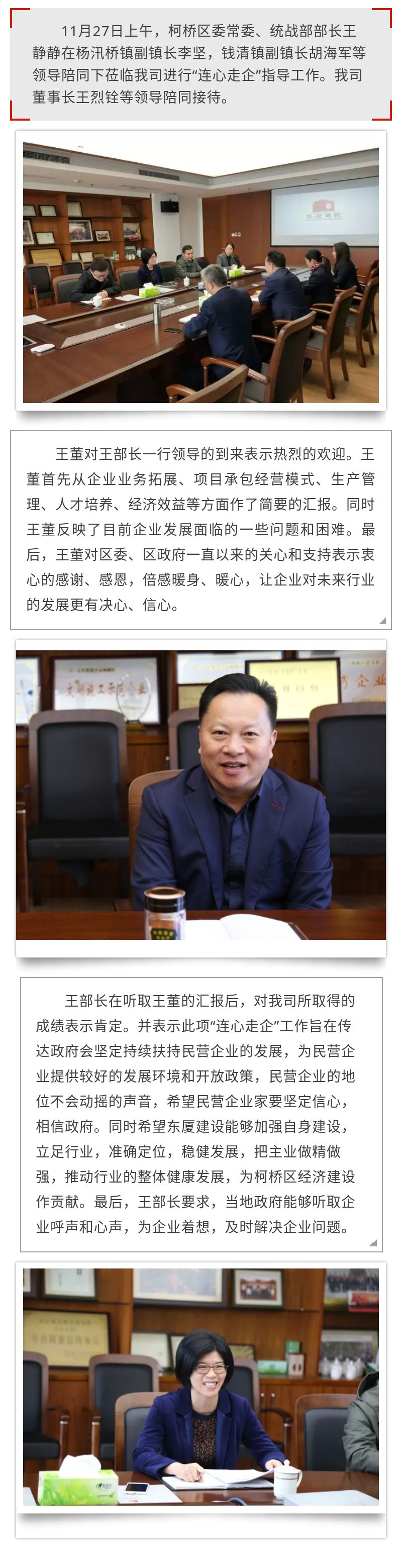 柯橋區(qū)委常委、統(tǒng)戰(zhàn)部部長王靜靜等領(lǐng)導(dǎo)蒞臨我司進(jìn)行“連心走企”指導(dǎo)!