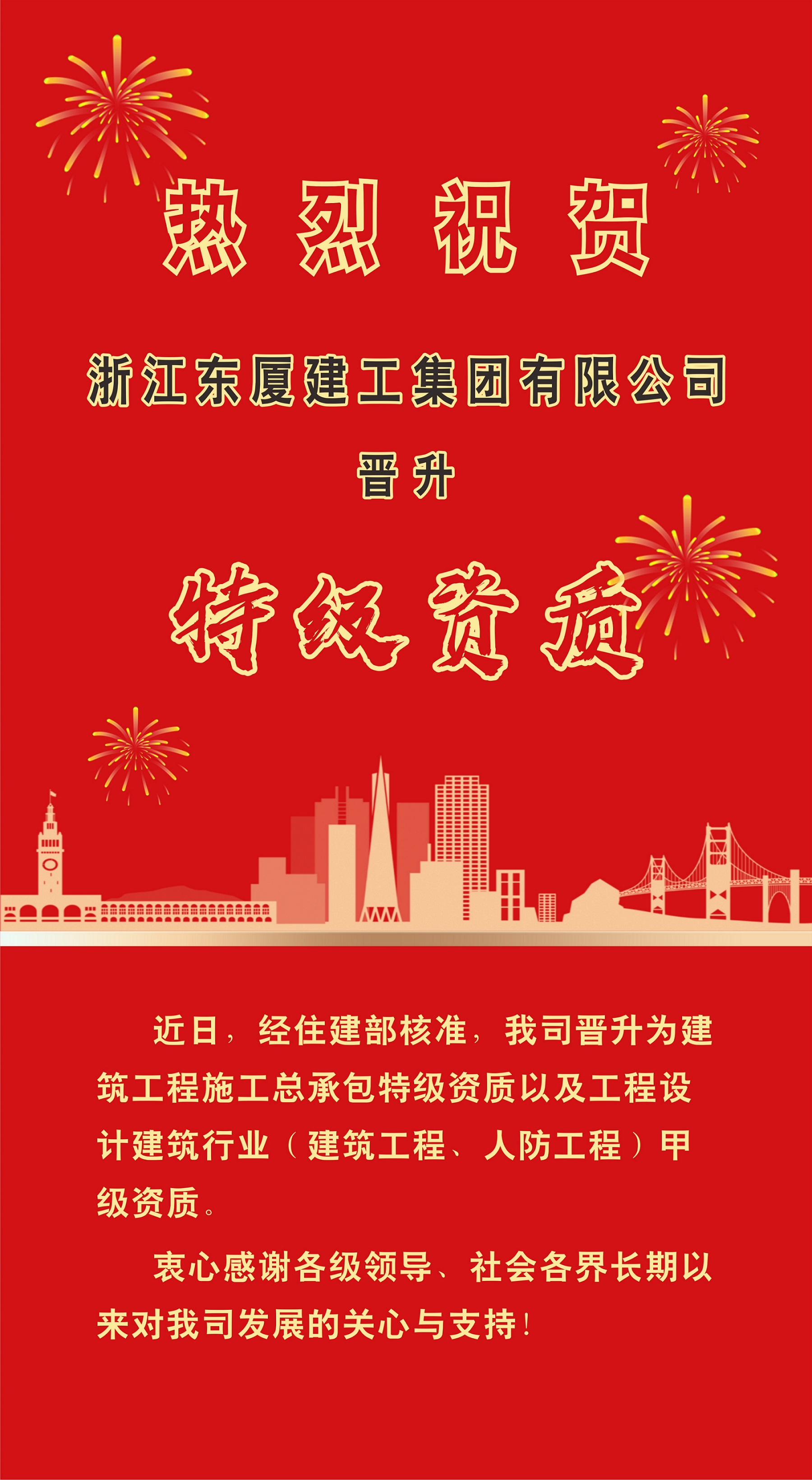 喜報(bào)!我司晉升特級(jí)資質(zhì)!