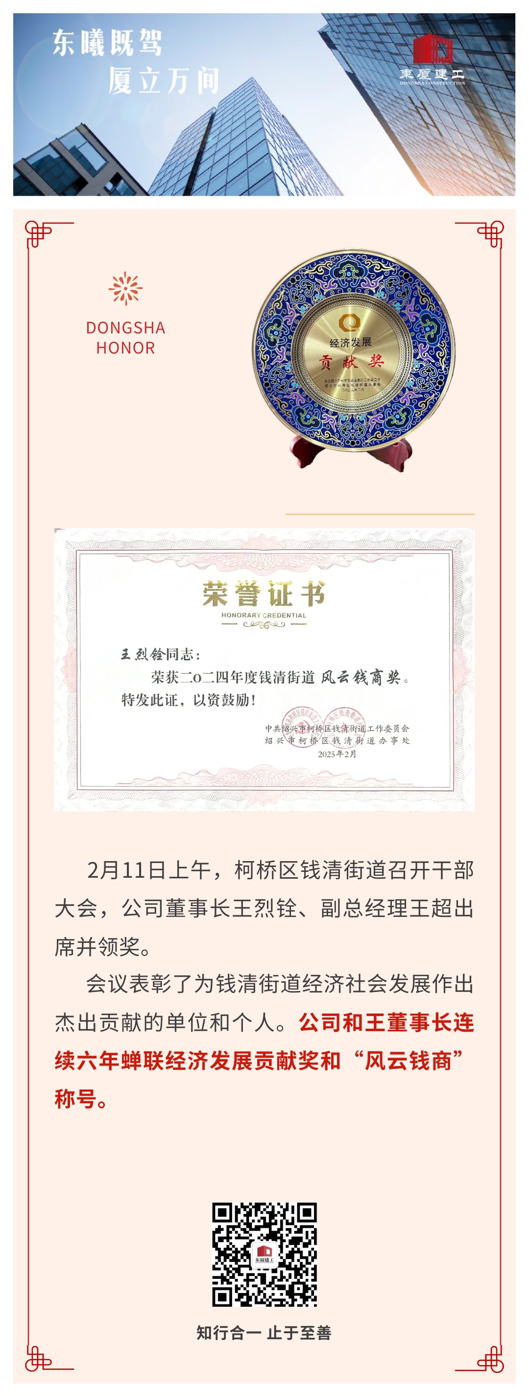 【東廈榮譽】公司和王董事長雙雙蟬聯(lián)錢清街道經(jīng)濟發(fā)展貢獻獎、“風(fēng)云錢商”